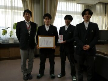 昨年10月に開催された第79回国民スポーツ大会(わたしSHIGA輝く国スポ・障スポ2025)銃剣道競技少年男子で優勝に輝いた、河﨑玲陽さん(2年)潮見涼成さん(2年)渡辺一徳さん(2年)が河本文教福祉振興会奨励賞を受賞しました。